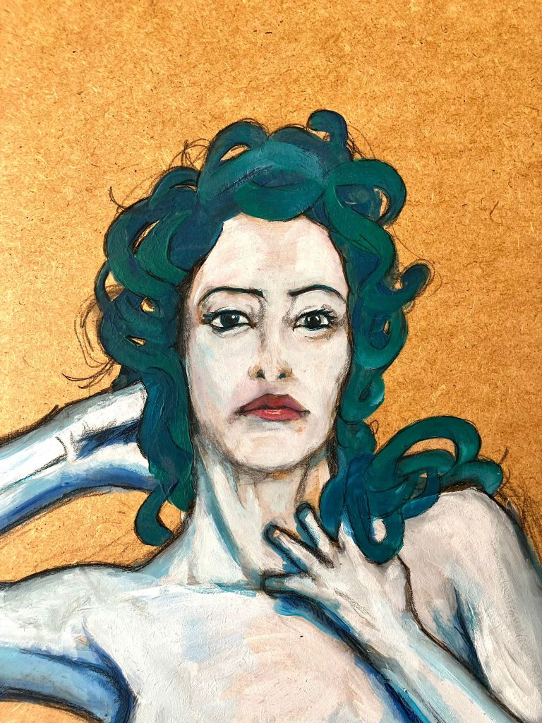 Freuds Medusa (Entwurf), ca. 35 x 65 cm, Acryl auf Sperrholz
